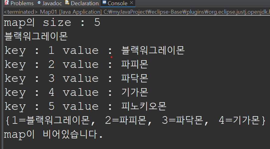 map.put(1, "블랙워그레이몬");