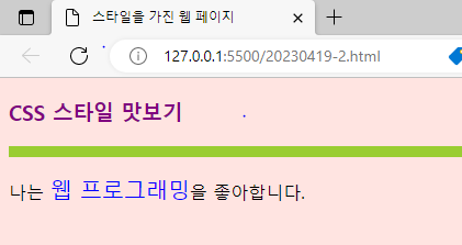<h3>CSS 스타일 맛보기</h3>