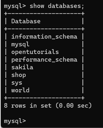 2) 데이터베이스 목록 확인 : show databases;
