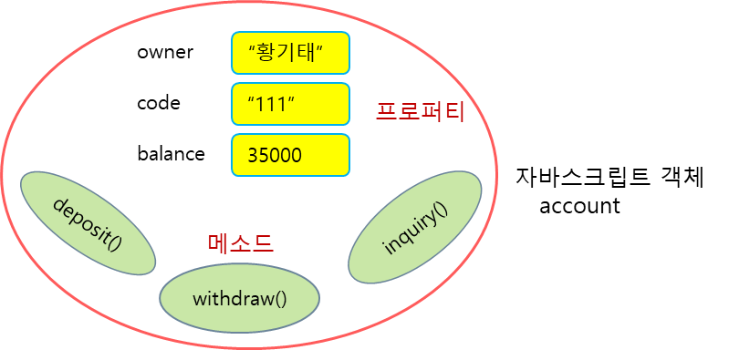 document.write("5000원 츨금 후 잔액은 " + account.inquiry() + "<br>");