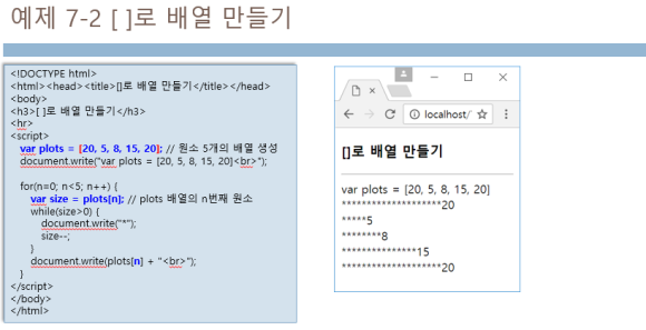 var plots = [20, 5, 8, 15, 20]; // 원소 5개의 배열 생성