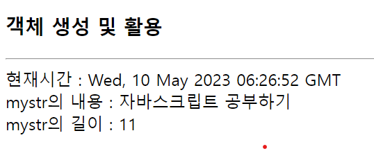 document.write("mystr의 길이 : " + mystr.length + "<br>");