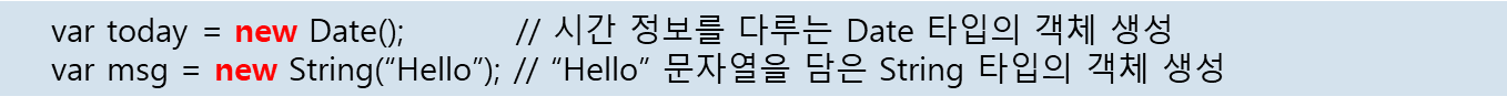 var now = new Date(); // 현재날짜와 시간(시, 분, 초)값으로 초기화된 객체 생성