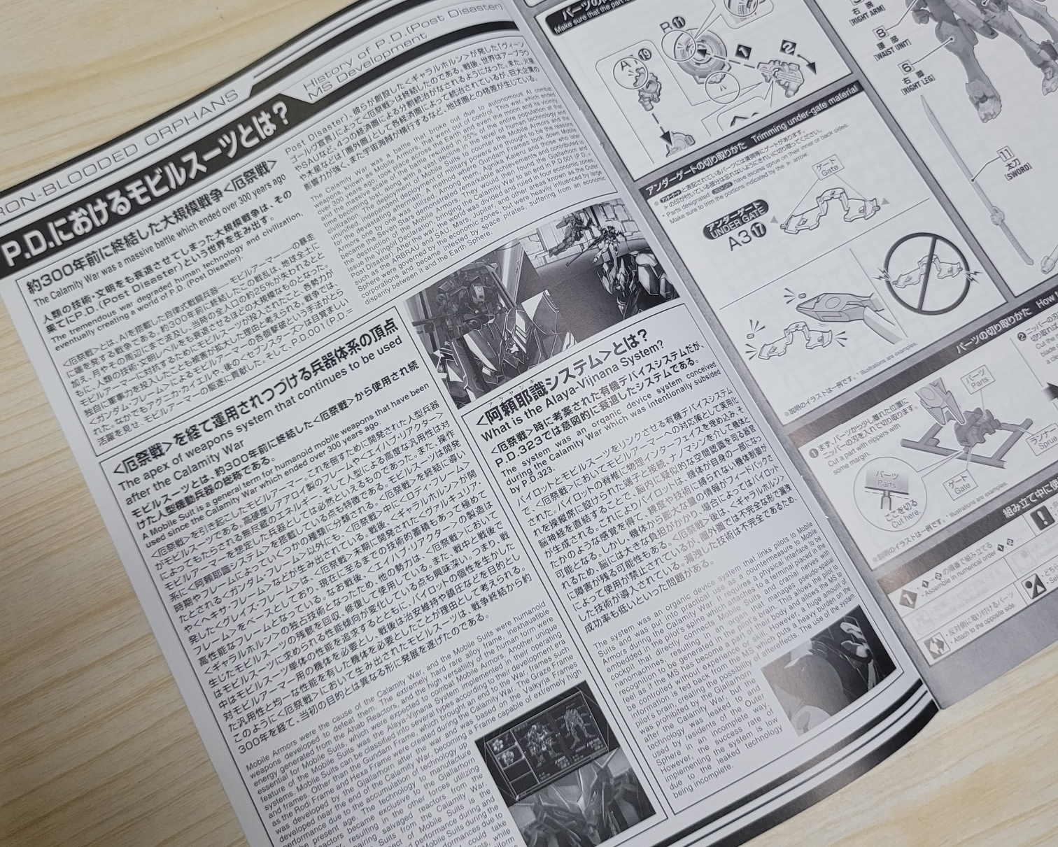 [액제전]은, AI를 탑재한 자동전투병기 모델아머 의 폭주에 끝을 일으킨 전쟁이였다. 약 300년전에 종결한 이 전란은 지구전사에 더해, 월이나 그 주변까지 파급하고 당시의 전인구의 약25%가 사라진것과 동시에 인류의 기술.문명레벨을 쇠퇴시킬 정도의 대규모가 되었다. 모빌아머에 대항하기 위해 모델슈트가 도입된것, 각세력이 독자적인 군사력을 도입한 것도 피해가 확대한 이유로 생각된다. 전쟁에서는 [건담프레임]에 의한 모델아머의 각개격파라고 하는 수법이 취급되었다. 그중에서도 아그니카 카이엘이나 그뒤의 [세픈스타즈]는 놀라운 활약을 보여 모델아머의 구축에 공헌했다. 그리고 P.D.001(P.D. = Post Disaster), 그들이 창설한 [갸랄홀]가 발행한 [뷜골전언]에 의한 [ 액제전]은 종결한 것이다. 전후 세계는 아브란이나 SAU등 4개의 경제권에 의한 분할통치가 이루어지게 되었다. 또 화성이나 수성등은 [권외권]으로써 각경제권에 의해 통치되고 있지만 거대기업의 영향력이 강해 또 우주해적가 횡행하는등 지구권과의 격차가 발생하고 있다.