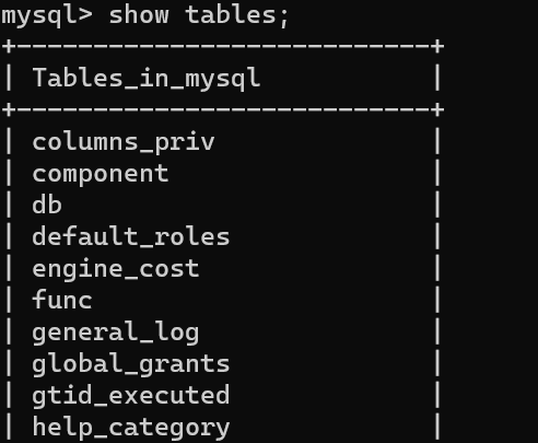 4. 선택한 DB에 존재하는 테이블 목록확인