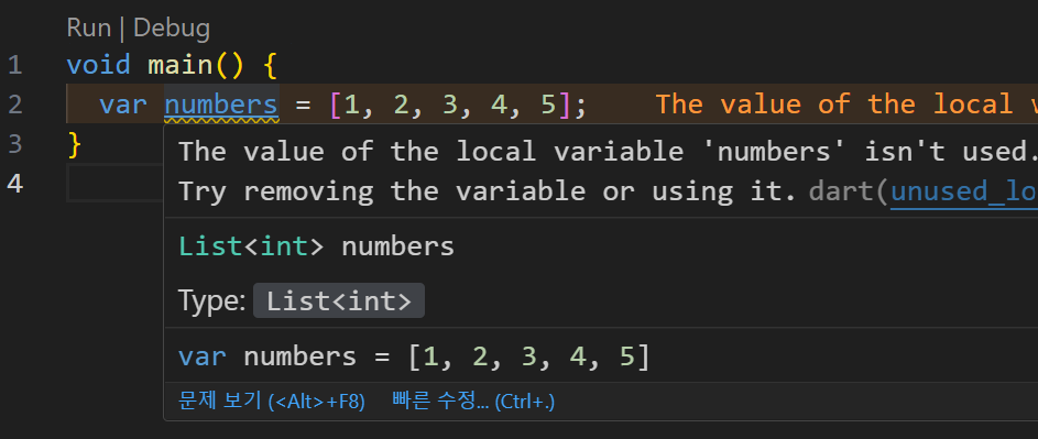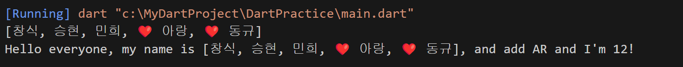 - Dynamic(동적타입)은 다른 Dart의 타입과는 다르게 변수의 타입을 명시적으로 선언하지 않아도 되며 변수에 할당되는 값에 따라 그 타입이 동적으로 결정된다.