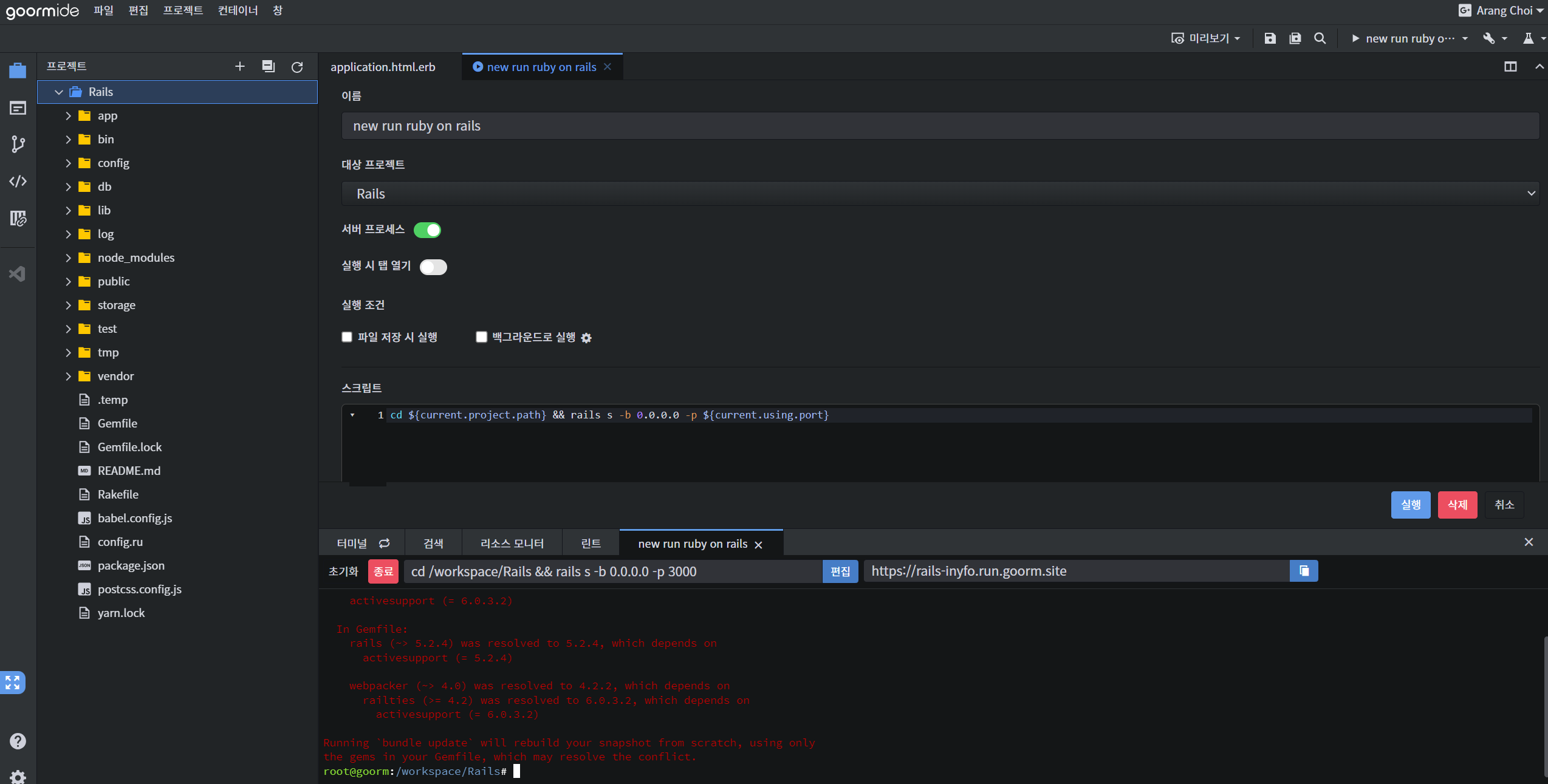 서버가 실행되는데 시간이좀 걸리기때문에 처음에는 에러가 발생할 수 있다..조금기다려주자!!