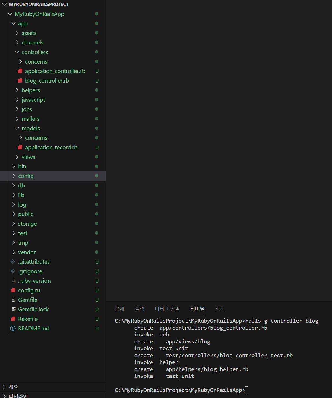 # "blog"는 컨트롤러의 이름이로 자동으로 컨트롤러 파일과 views하위에 blog폴더가 생성된다.