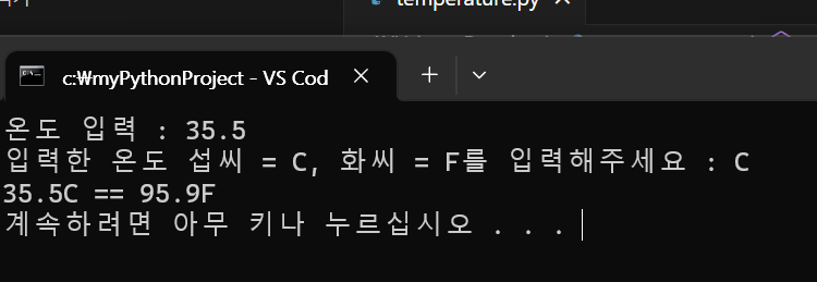 temperature = float(input("온도 입력 : "))