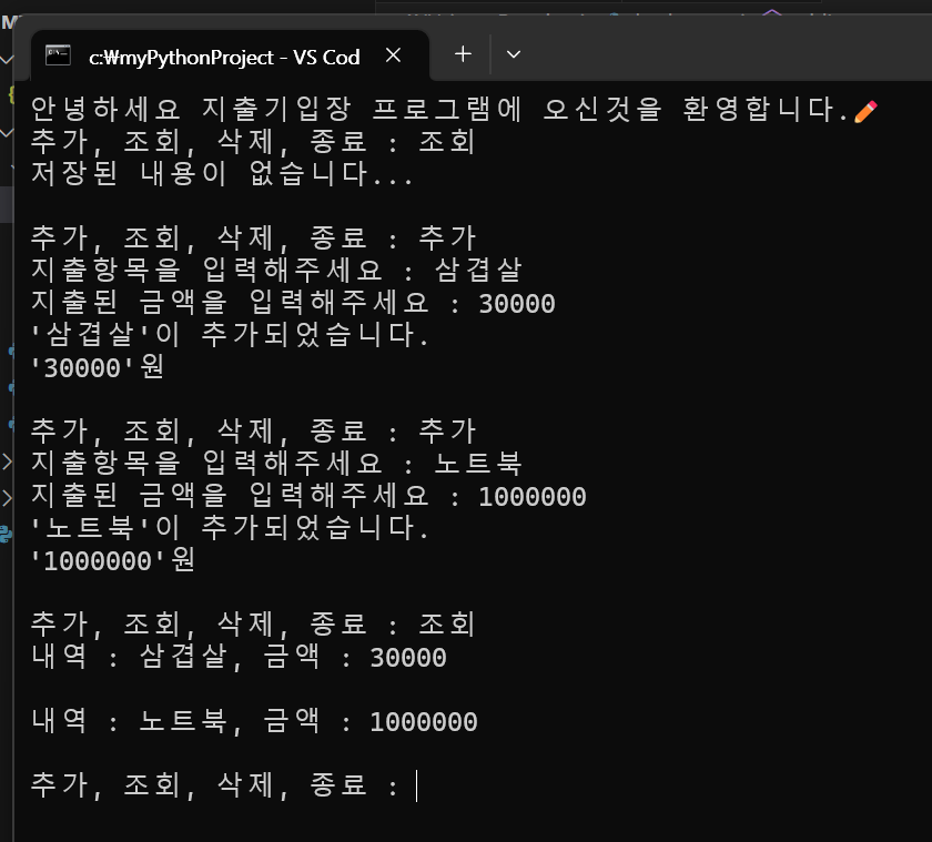 Python 지출기입장프로그램 본문