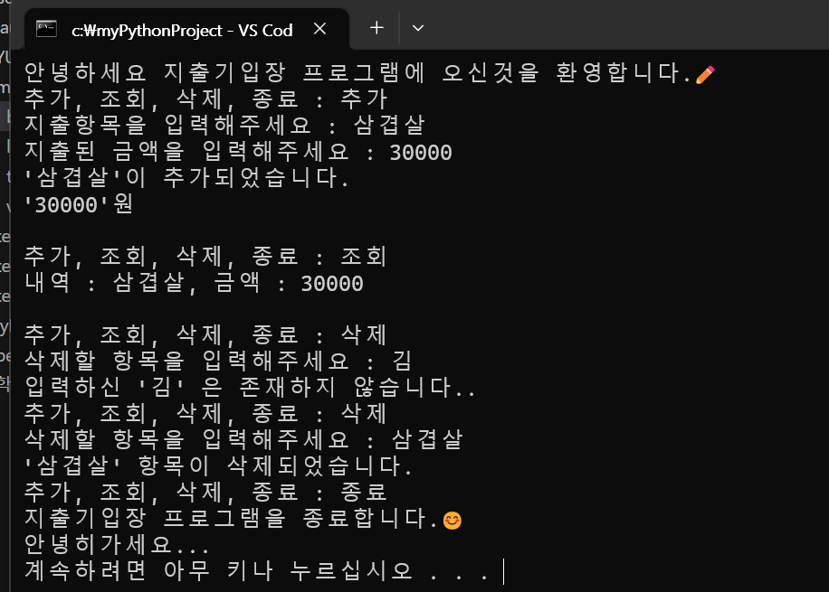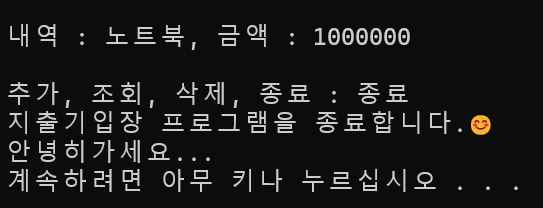 print("지출기입장 프로그램을 종료합니다.😊\n안녕히가세요...")