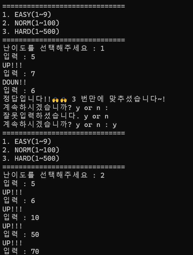 print("업다운 게임을 종료합니다..")