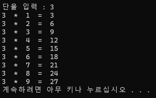 0. 사용자입력으로 출력하고 싶은 구구단을 만든다.