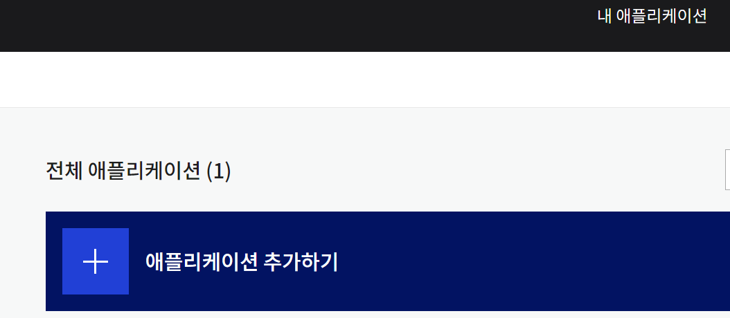 상단의 [내 애플리케이션]을 클릭한 후 [애플리케이션 추가]를 클릭한다.