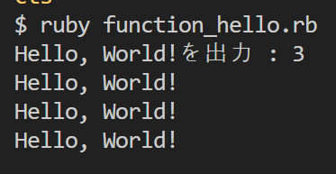 - メソッドを修正して入力を受けた数だけ"Hello World!"を出力