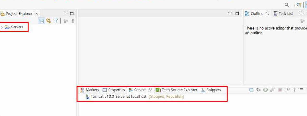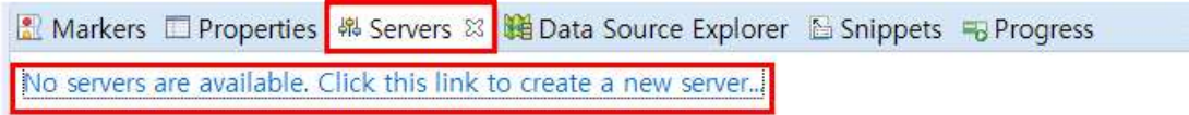 13. 이클립스 화면 아래쪽 Servers 탭을 열고 Click this link create new server 부분을 클릭한다