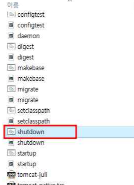 11. 종료시에는 C:\Tomcat\bin 폴더에 shutdown.bat 파일을 실행시켜 종료한다.