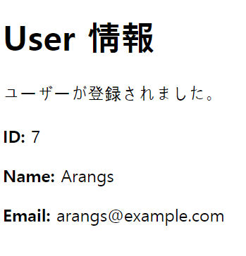 - 新しいUserオブジェクトを生成し会員登録Formにバインディングする。