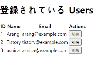 - HTMLを生成し'削除'バトンをクリックすると、サーバーにリクエストを送信する。