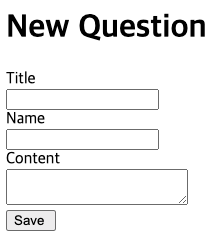 - <%= @question.title %>, <%= @question.name %>, <%= @question.content %>は @questionオブジェクトの title, name, content属性をレンダリングする。