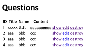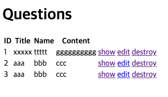 - 各質問に対する destroyリンクを生成する。