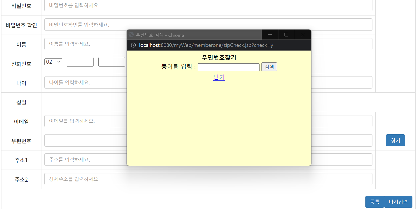 | JSP 개인프로젝트(2) 회원테이블생성 zipcode생 (3) | 2023.02.04 |