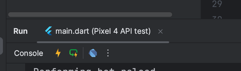 옆에 박스번개를 클릭하면 Hot restart가 실행되어 상태를 초기화하고 변경사항을 반영할 수 있다.