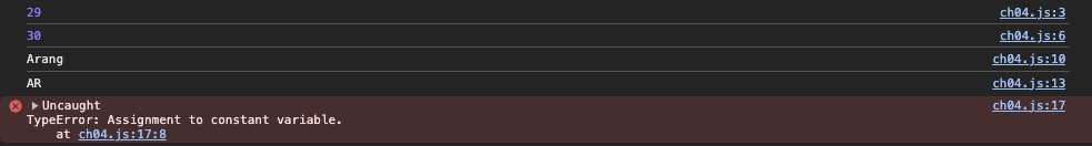 - 상수는 선언과 동시에 초기화를 해줘야한다.