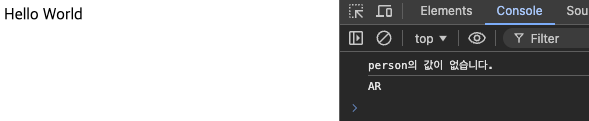 - console.log(name || "person의 값이 없습니다."); 에서 name이 없다면 메지시를 출력하게된다.